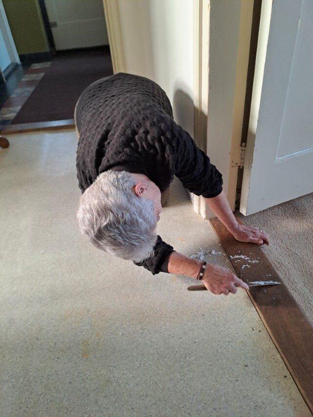 Oplettende Ria ziet alles. Ging op haar knieën om het schoon te maken.