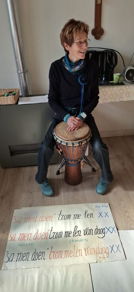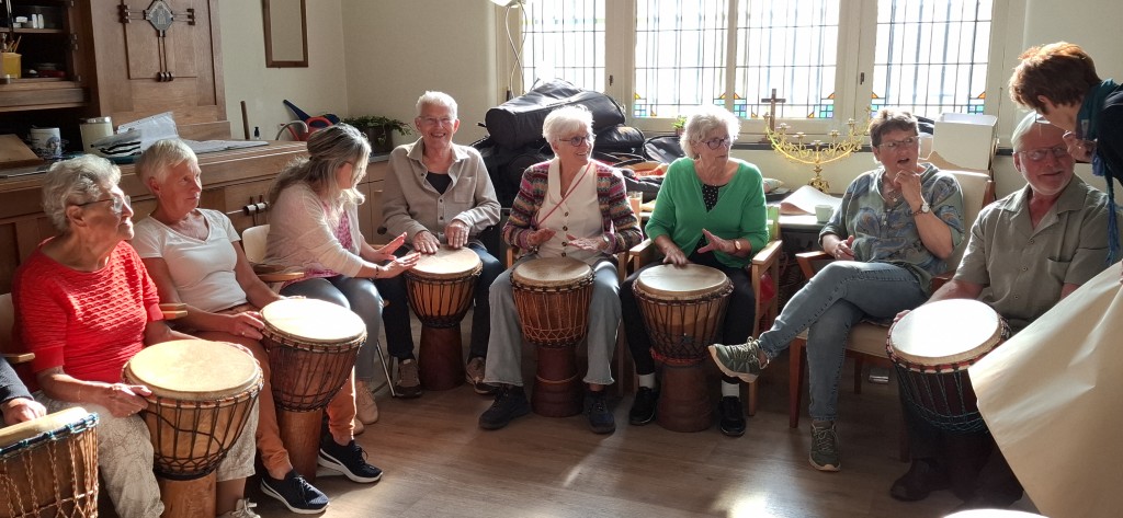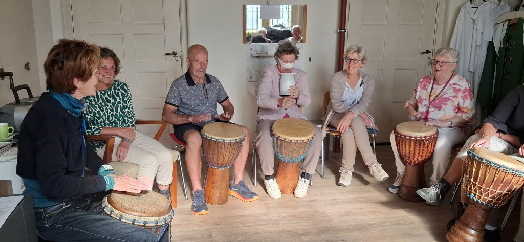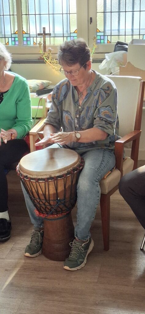 Ze vertelde dat Marian ons vandaag ging vermaken met de djembé.
