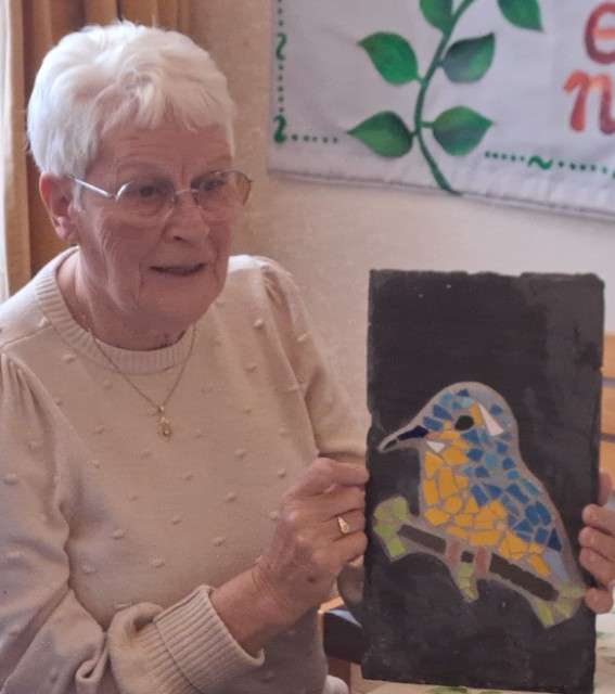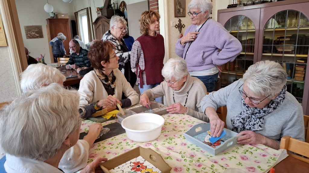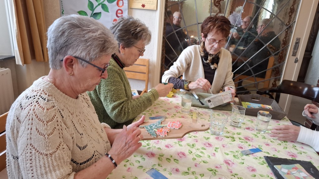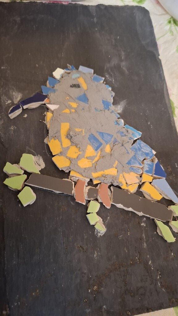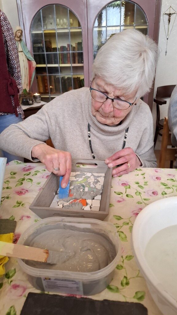 Vandaag het vervolg van vorige week: inwassen van de mozaïeken.