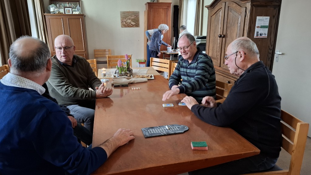 De schutjassers houden het oude spel levend. In de andere kamer vliegen de troeven om je oren,