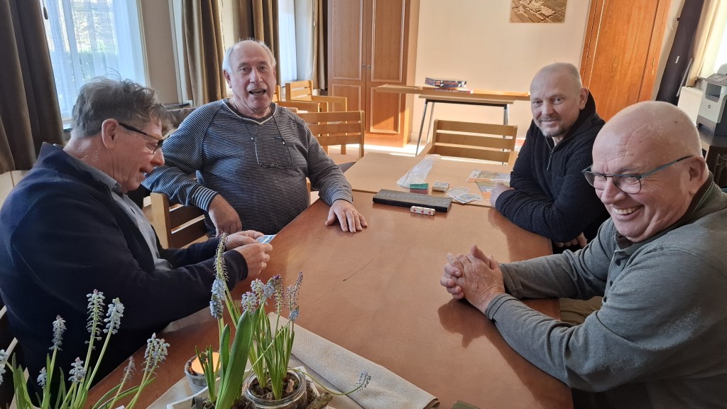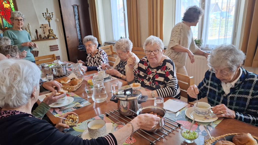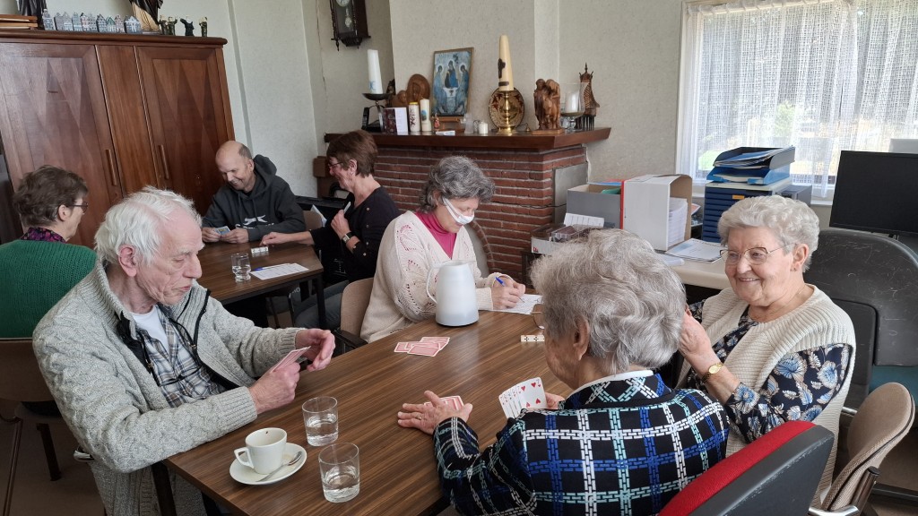 3 maart Wat weten we eigenlijk van elkaar? Hoeveel weten we eigenlijk van elkaar?Dat is best grappig, sommigen mensen kennen elkaar soms wel 30, 40 jaar….maar weet je dan ook alles over elkaar?Corine had hiervoor een leuk vragenspel. Aan de hand van de theezakjes labels werden er vragen gesteld zoals: is er een vakantiebestemming waar je nog weleens een keer naartoe zou willen?Dat er soms verrassende antwoorden en leuke anekdotes naar voren kwamen, was te verwachten! Tja, maar bij de kaarters werden alleen de speelkaarten op tafel gelegd, verder gaven ze niets prijs! De lunch was vandaag simpel, maar dat is ook wel eens een keer lekker!Twee soorten soep, broodjes knakworst en tosti’s, dus nog steeds keus genoeg!